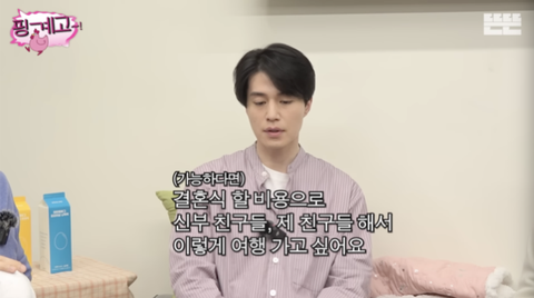 이를 듣던 이동욱은 “남창희는 결혼식장에서 결혼식을 하고 싶냐”고 물었고, 남창희는 “그러면 어디서 해요?”라고 당황했다. 이동욱이 “아니 뭐 스몰 웨딩도 있을 수 있고”라고 말하자, 남창희는 “그냥 결혼식장에서 하고 싶다. 일반적으로 하는 느낌으로 하는 게 제 마음이 편하다”고 답했다.이에 유재석은 “욱동이는 스몰웨딩할 거냐”고 물었고, 이동욱은 “저는 결혼 ‘식’을 안 하고 싶다. 물론 이건 신부의 의견에 전적으로 따르겠지만, 결혼식 비용으로 신부 친구들, 제 친구들 해서 이렇게 여행 가고 싶다”고 밝혔다.