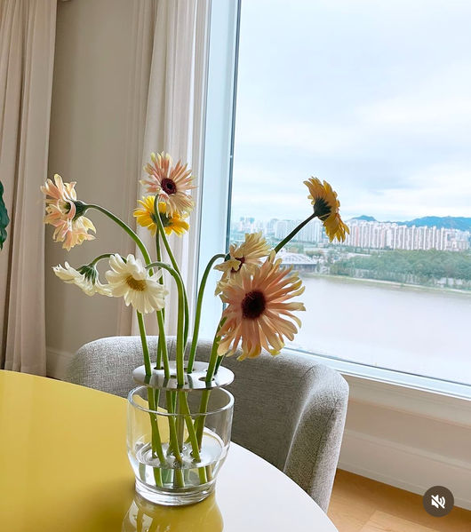 또한 김연아는 곱게 꽃꽂이가 된 사진을 올리기도 했는데, 그의 집안 내부라면 한강 뷰 실내가 인상적인 공간이라고 생각이 들 정도였다.