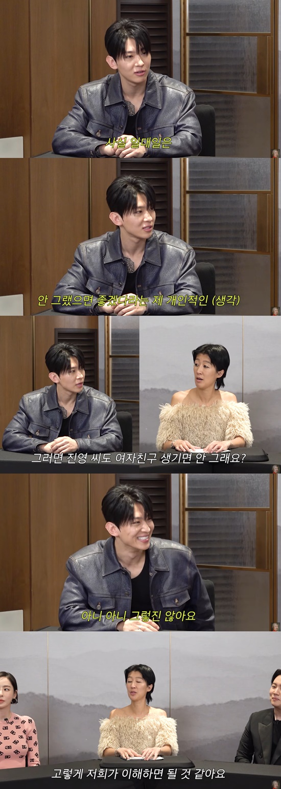 덱스는 "일대일은 가급적 안 그랬으면 좋겠다. 저는 평상시에 여자랑 커피 마실 일이 없다"며 애인이 이성친구와 단둘이 할 수 있는 범위를 언급했다.