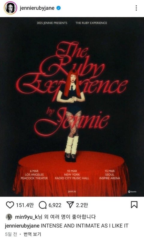 세븐틴 민규가 제니 5일전 게시물 좋아요 누름