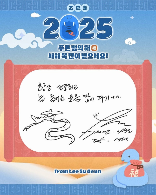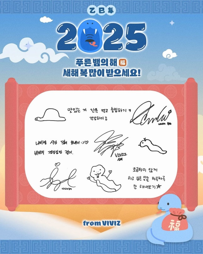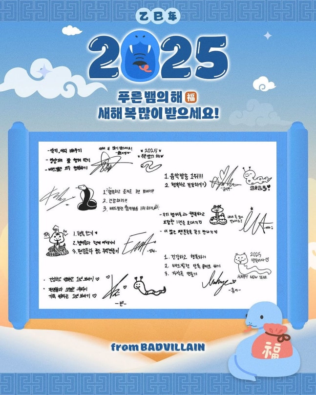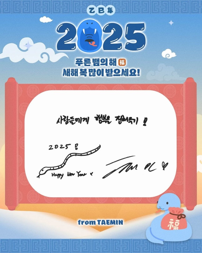 가수 이승기, 태민, 그룹 비비지 등 빅플래닛메이드엔터테인먼트 소속 아티스트들이 설날을 맞아 을사년 다짐을 전했다.빅플래닛메이드엔터테인먼트는 설 명절 당일인 29일 소속사 공식 계정을 통해 "BPM Friends가 보내는 2025 을사년 다짐을 담은 메시지가 도착했다"며 사진 여러 장을 올렸다.