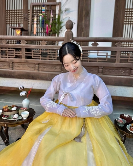 이번에 함께 공개된 사진에는 한복을 곱게 차려입고 포즈를 취하고 있는 다현의 모습이 담겨있다,