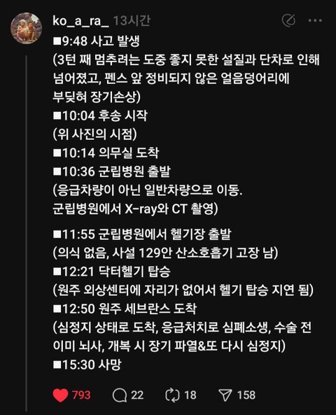 안전에 무감각하고 무책임한 나라.. 진짜 짜증난다...고인의 명복을 빕니다