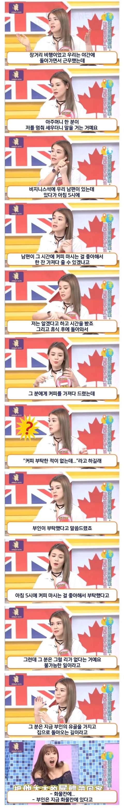 승무원에게 남편의 커피를 부탁한 부인 ㄷ