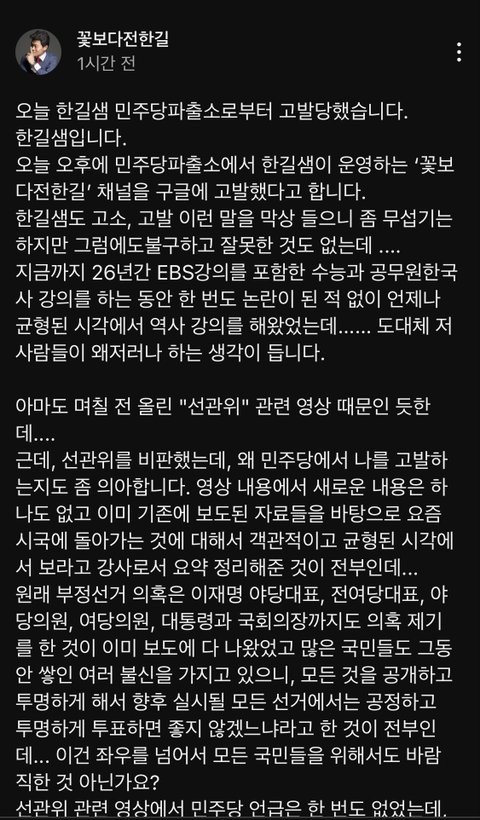 민주당이 전한길 채널 고소함