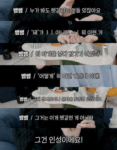 민니는 그게 틀렸다는 걸 알긴 하지만 문자용 맞춤법으로 충분히 이해가 된다는 쪽