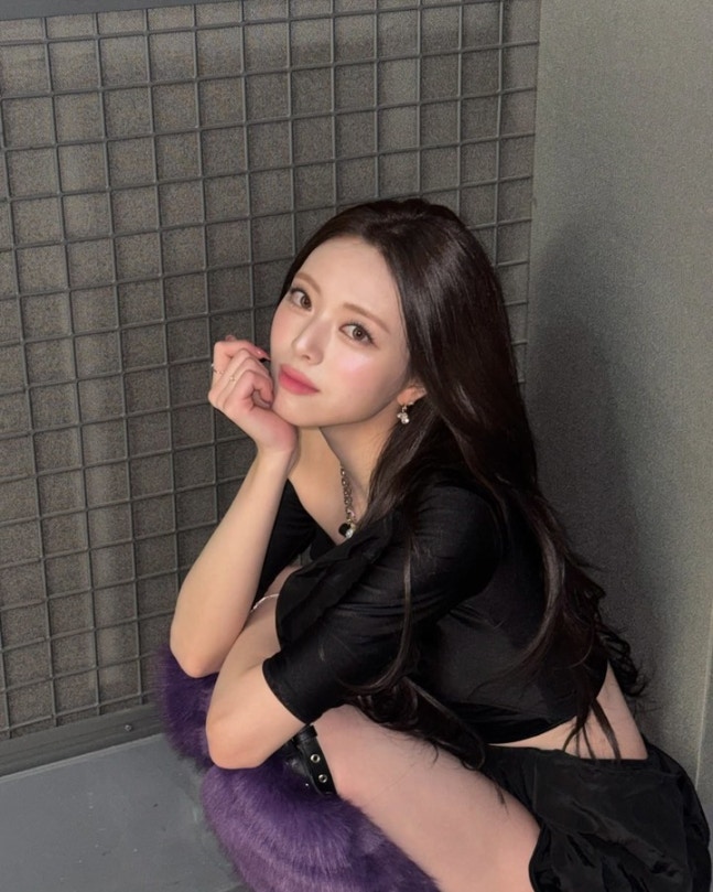 공개된 사진 속 유나는 'pocket locket' 무대에서 선보였던 의상을 입고 있다.