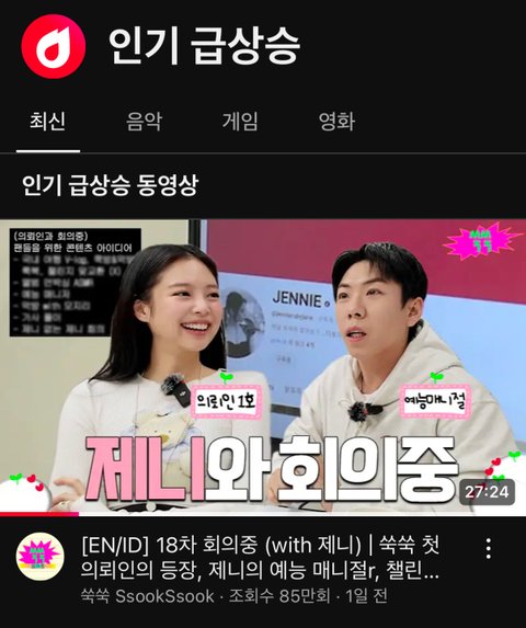 쑥쑥 제니편 ㄹㅇ 이 영상 보면 제니한테 빠지게됨... ㅈㄴ 매력걸이야 https://youtu.be/yxfpgySdkEU?si=fd-4pfWjJEnDHS-i
