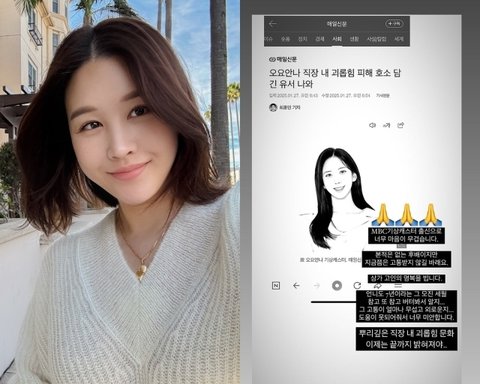한편 오요안나는 지난해 9월 향년 28세의 나이로 세상을 떠났다. 유족들은 고인이 생전 직장 내 괴롭힘 피해를 호소했다며, 가해자로 지목된 MBC 기상캐스터 2명을 상대로 민사소송을 제기했다.