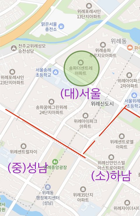 서울 위례는 어떻게 해서든 서울인거 티 내면서 경기도랑 선 그으려고 아파트 이름에 ‘송파 위례’라고 함ㅋㅋㅋ