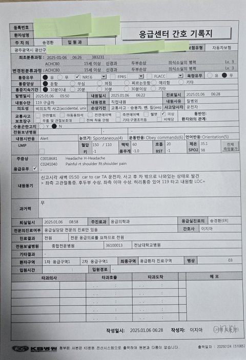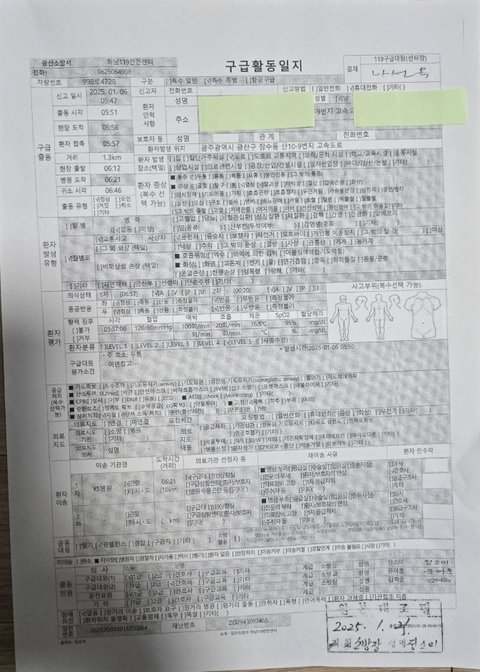 (119구급활동일지와 병원의무기록으로 확인가능)