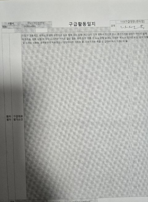 대학병원까지 뇌출혈환자가 경추고정대없이