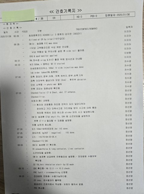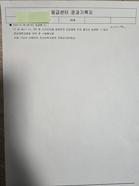 처음 이송된 1차병원에서 오전 6시31분께 CT를 찍고