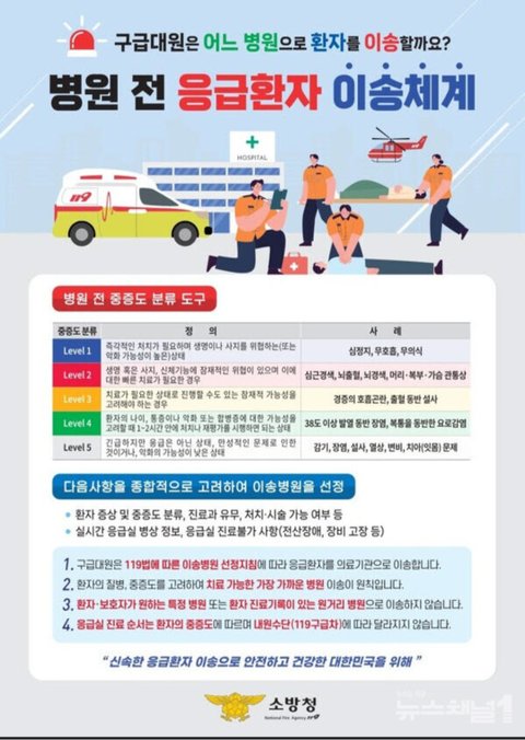 의식이 있다고 레벨5라고 체크해서 중증외상센터가