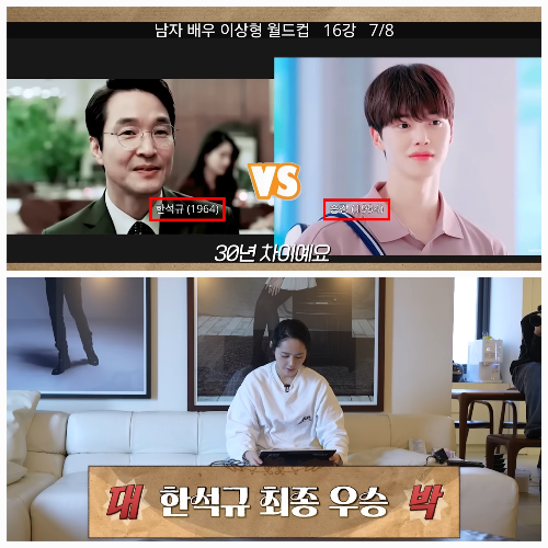 하지만 결승전에서 한석규와 이준호가 격돌하자 한가인은 더욱 혼란스러워하며 “왜 이렇게 진이 빠지냐. 재미있을 줄 알았는데 너무 어렵다”고 털어놨다. 깊은 고민 끝에 그는 최종 우승자로 한석규를 선택하며 반전 결과를 만들어냈다.이 모습을 본 팬들은 “연정훈 반응이 궁금하다”, “한가인 취향 대반전”, “이준호도 좋지만 한석규라니, 안목 인정” 등의 반응을 보였다.