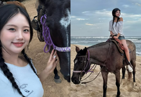 공개된 사진 속 이재시는 미국 하와이 해변가에서 말을 타는 모습. 양갈래 머리를 하고 청순한 매력을 발산하고 있다. 또 다른 사진에서는 비키니를 입고 여유로운 시간을 보내고 있어 눈길을 끈다.