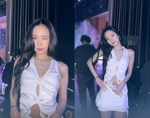 사진 속 손나은은 흰색 홀터넷 투피스를 입고 카메라를 향해 윙크하고 있는 모습이다. 손나은은 앞과 옆이 살짝 트인 원피스를 완벽 소화하며 슬림한 몸매를 드러냈다.