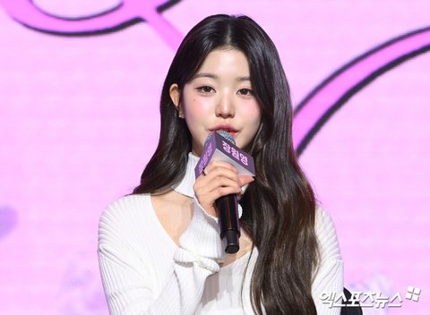 이날 기자간담회에 참석한 아이브 장원영이 질의응답 시간을 갖고 있다.고아라 기자 iknow@xportsnews.com