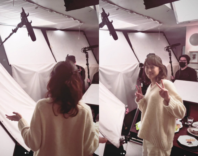사진 속 공효진은 하정우가 연출을 맡은 영화 '윗집 사람들' 촬영에 임하고 있다. '윗집 사람들'은 층간 소음으로 만난 두 부부가 함께 저녁 식사를 하면서 벌어지는 소동극이다.