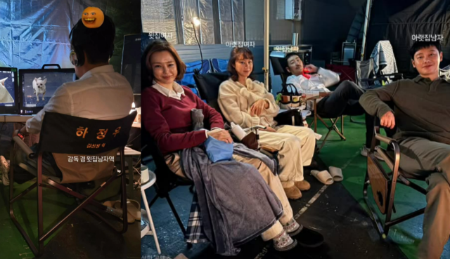 공효진 SNS이날 공효진은 SNS 스토리에 "감독 겸 윗집 남자 역"이라며 하정우의 뒷모습을 올리는가 하면, '윗집 남자' 하정우, '윗집 여자' 이하늬, '아랫집 남자' 김동욱, '아랫집 여자' 본인까지 모인 단체샷을 공개하기도 했다.