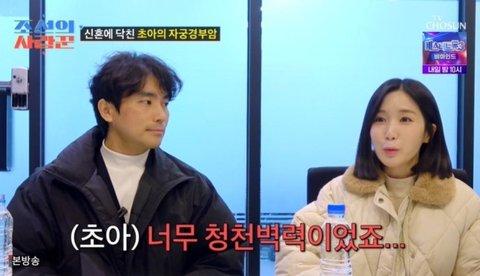 초아의 남편은 “저도 현실감이 없었다. 별거 아니라고 생각하고 싶었다. 자궁을 보호하는 수술은 안 되고, 자궁 적출하는 게 매뉴얼이라고 했다. 그때부터 힘든 시기가 시작됐다. (초아가) 혼자 화장실에서 통곡했다”고 떠올렸다.