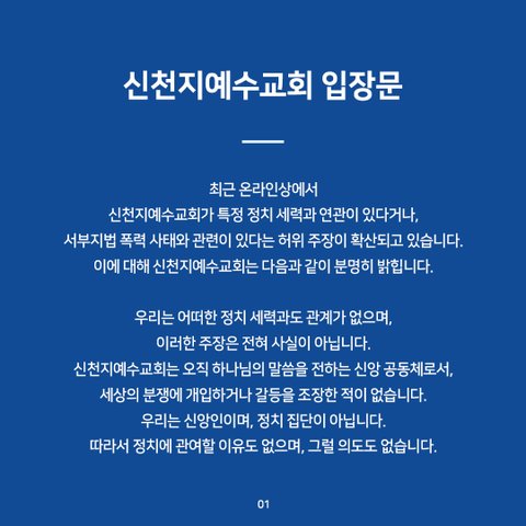 아래 신천지교회 입장문을 통해 진실을 확인해 보셨으면 좋겠습니다.