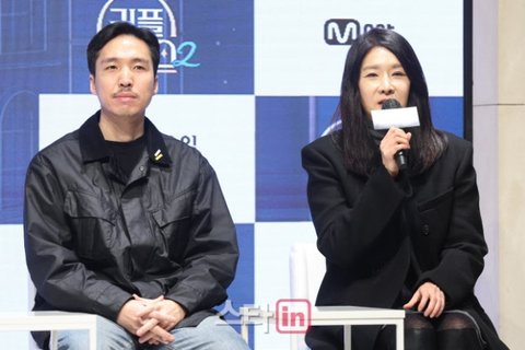 [이데일리 스타in 이영훈 기자] 이선영 CP, 정민석 PD가 4일 오전 서울 강남구 엘리에나 호텔에서 열린 Mnet 예능 '커플팰리스2' 제작발표회에서 질문에 답하고 있다.