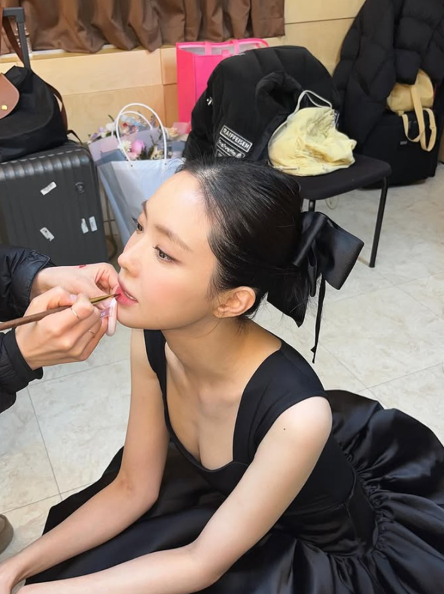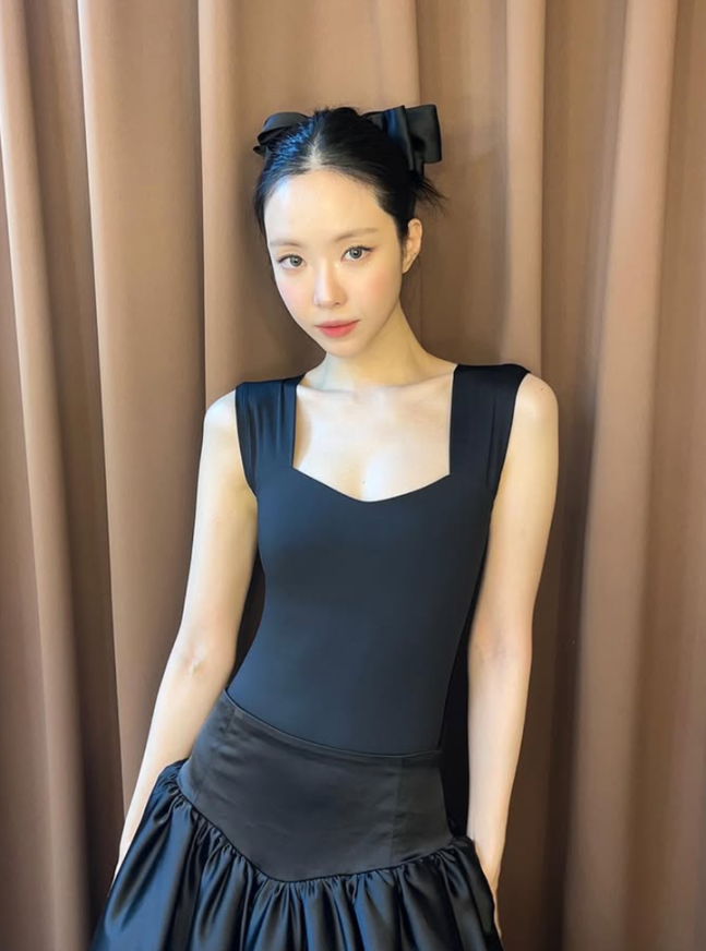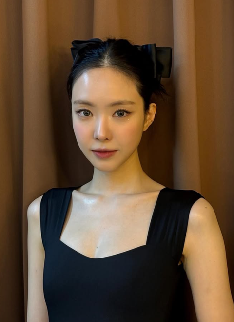 사진 속 손나은은 블랙 새틴 드레스에 목선이 드러나는 하이 업스타일로 화사하면서도 우아한 분위기를 연출했다. 또한, 얼굴만 한 큰 리본을 더해 그의 작은 얼굴을 더욱 강조했으며, 마치 오드리 헵번을 연상시키는 세련된 무드를 완성했다.
