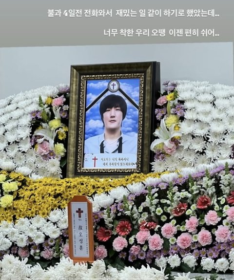 강세정은 고인이 된 오성훈의 영정사진을 공개했다. 고인은 강세정 외에도 수많은 연예계 동료의 추모를 받고있다.