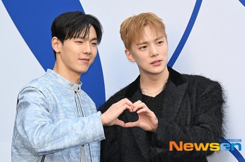 유용주 yongju@newsen.com[뉴스엔 유용주 기자] 몬스타엑스 셔누(왼쪽), 민혁이 2월 5일 오전 서울 중구 DDP(동대문디자인플라자)에서 열린 2025 F/W 서울패션위크 한나신 컬렉션 포토월에 참석해 포토타임을 가지고 있다.