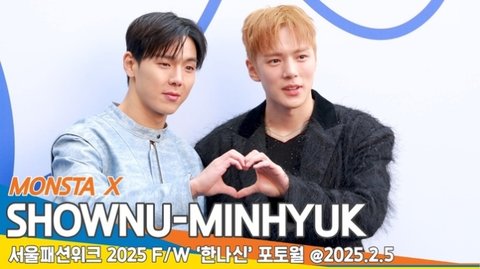 쇼 시작에 앞서 진행된 셀럽 포토월에는 그룹 몬스타엑스 셔누, 민혁이 자리해 포토타임을 가졌다.