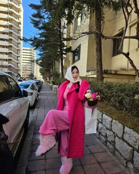 공개된 사진에는 머리부터 발끝까지 핑크색 의상으로 풀착장한 장영란의 모습이 담겼다.