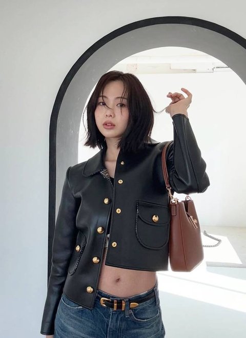 배우 금새록이 복근을 드러낸 가죽 재킷으로 힙한 걸크러시룩을 선보였다.