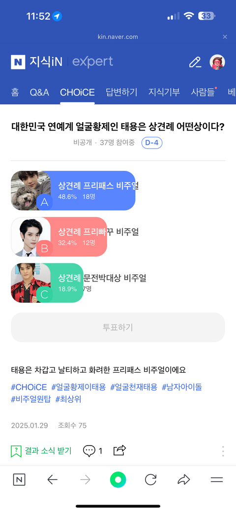 네이버에서 진행중인 대한민국 연예계 얼굴황제인 태용은 상견례 어떤상이다? 여초 투표