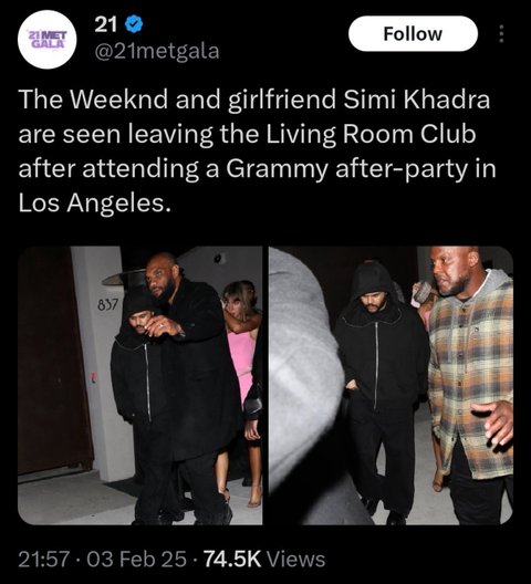저거 위켄드가 주최한 그래미 애프터파티인 듯. 이번에 LA 산불 때문에 그래미에서 애프터파티 따로 안 열어줌. 그래서 그래미 수상한 가수들이 각자 자기 친구들끼리 비공개로 애프터파티 열었음. 브루노도 자기 바에서 따로 열어서 거기에 로제 감