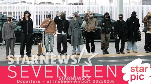 그룹 세븐틴(SEVENTEEN) 에스쿱스, 조슈아, 준, 호시, 원우, 우지, 디에잇, 민규, 도겸, 승관, 버논, 디노가 자카르타 팬미팅 일정을 위해 6일 오후 인천국제공항을 통해 출국하고 있다. 2025.02.06