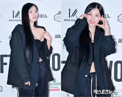 이날 패션쇼에 참석한 엔믹스 출신 지니가 포즈를 취하고 있다.