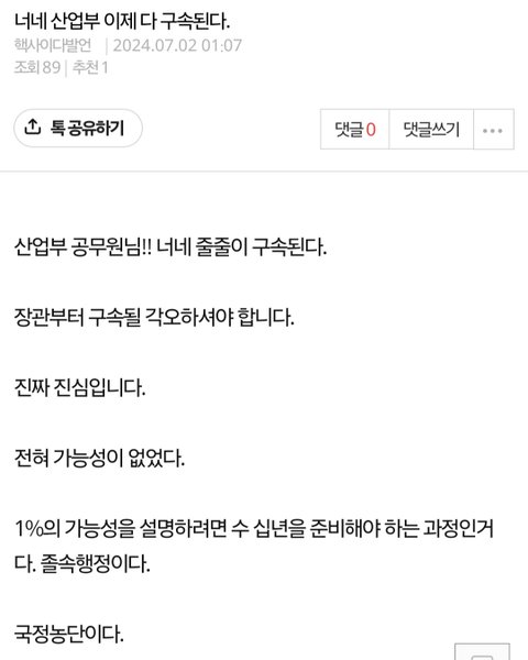 예전에 산업통상자원부에게 이거 손 때리는 글에 저항적인 댓글이 많이 달렸는데 저는 사실만 말했습니다. 진심을 가지고 조언을 하면 받아들이세요.