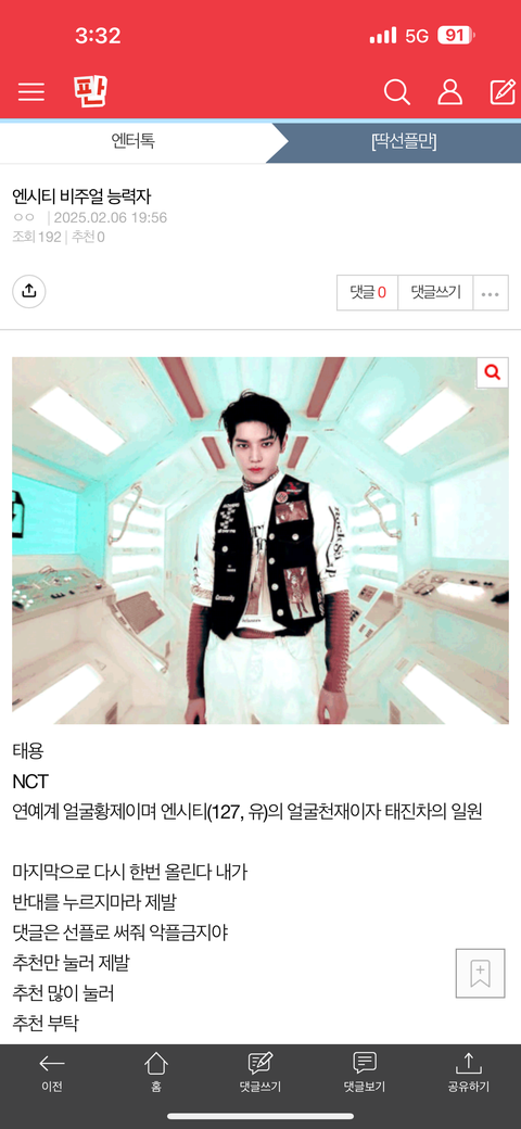 엔시티 비주얼 능력자글에 반대를 누르지 말아줘 더이상