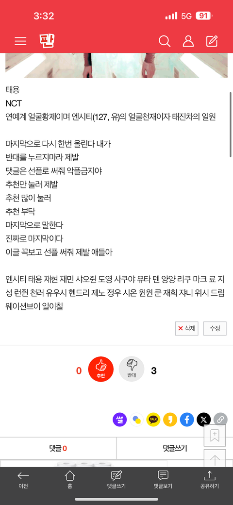 왜 엔시티 비주얼 능력자 글에 반대를 눌렀어?