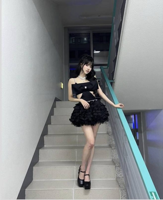시은은 블랙 미니드레스를 착용한 모습이 눈길을 끌었다.사진=시은 SNS이번 스타일링에서 가장 돋보인 부분은 드레스의 독특한 디자인이었다. 커다란 리본 디테일과 풍성한 프릴 스커트가 러블리하면서도 고급스러운 분위기를 자아냈다.여기에 허리 부분의 컷아웃 디자인이 더해져, 시크함과 여성스러움을 동시에 연출했다. 실버 벨트는 전체적인 룩을 더욱 세련되게 마무리했다.