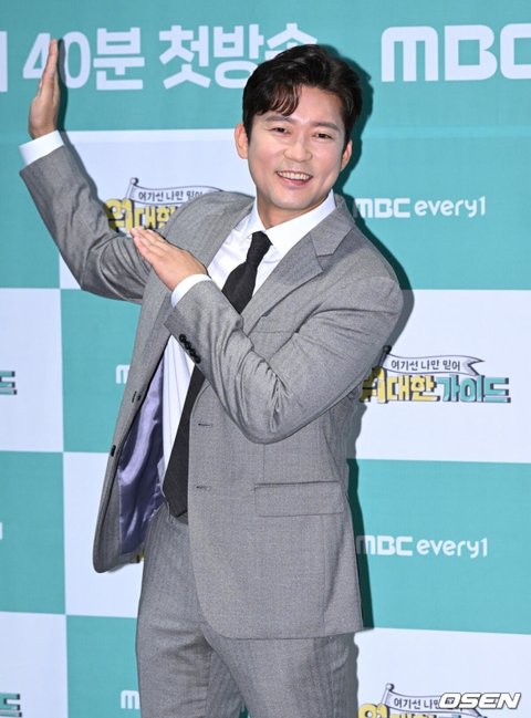 [OSEN=이대선 기자] 16일 오후 서울 마포구 스탠포드호텔코리아에서 MBC 에브리원 예능프로그램 '위대한 가이드' 제작발표회가 열렸다.아나운서 김대호가 포토타임을 가지고 있다. 2023.10.16 /sunday@osen.co.kr