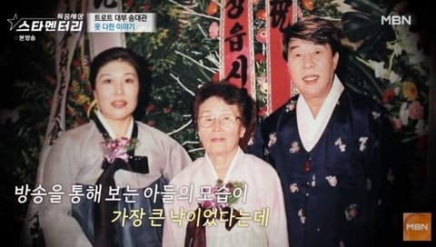 2016년 힘든 시기 어머니를 떠나보낸 송대관. 사진 ㅣMBN송대관은 여러 방송에서 어머니를 향한 절절한 그리움을 토로해왔다.2020년 SBS플러스 ‘김수미의 밥은 먹고 다니냐?’에서 국밥집을 찾은 송대관은 어머니와의 기억을 꺼내놨다. ‘해뜰날’로 인기를 얻고 그제야 살만해졌는데 어머니가 갑자기 쓰러졌고, 병상 위 앙상하게 뼈만 남은 어머니의 팔을 보며 금반지 하나 못 끼워드린 것이 후회스러워 곧바로 병원 근처 금은방을 찾아 헤맸다고 기억했다. 병상으로 돌아와 어머니의 손게 팔찌를 직접 채워드렸다는 그는 팔찌에 비해 한없이 가냘픈 어머니의 팔을 붙잡고 통곡했다고 전했다.