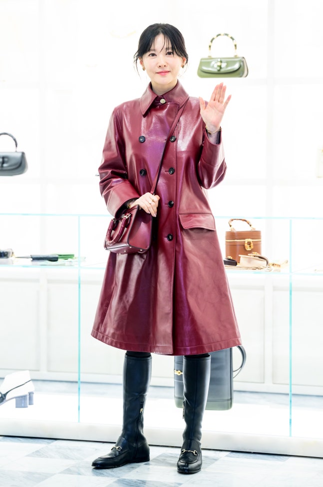 김성현 기자 : 산소 같은 이영애 배우의 미소와 아름다운 미소만 빛난다. 버튼을 모두 잠근 버건디 컬러의 레더 코트는 답답한 느낌을 자아내고, 핏 역시 다소 아쉽게 느껴진다. 사실상 눈에 들어오는 아이템이 아우터, 부츠, 가방밖에 없는 상황에서 모두 레더 소재로 통일하니 이 역시 심심하게 느껴진다.
