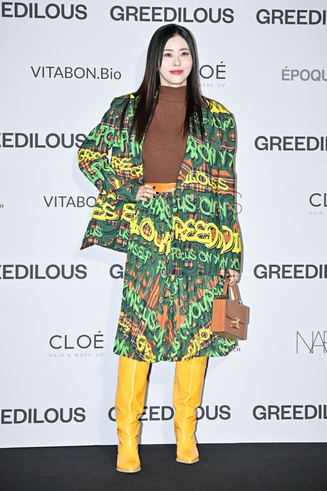 최보란 기자 : 어울리기 쉽지 않은 청록색을 멋지게 소화했다. 러블리한 컬리 헤어가 신의 한 수. 여기에 광택감이 있는 소재의 롱부츠와 마이크로 미니백으로 상큼함을 더했다.