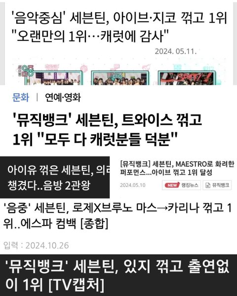 그걸로 "세븐틴 꺾은 플레이브"라는 뉴스가 뜸