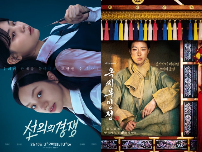 '선의의 경쟁', '옥씨부인전' 포스터. / 사진제공=STUDIO X+U, JTBC10일 공개 예정인 STUDIO X+U 드라마 '선의의 경쟁'은 여자 배우 혜리와 정수빈의 욕조 키스신으로 화제를 낳고 있다. STUDIO X+U는 LG유플러스의 콘텐츠 전문 브랜드다. STUDIO X+U가 지난 7일 유튜브로 선공개한 티저 영상에 이런 장면이 담겼다. 네티즌들은 이 영상에 "무조건 봐야 한다", "빨리 10일이 됐으면 좋겠다" 등의 댓글을 남겼다.