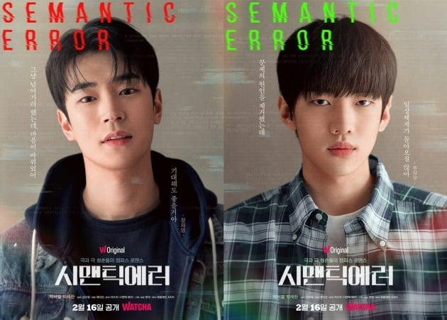 '시맨틱 에러' 포스터 / 사진제공=왓챠지난달 26일 종영한 JTBC '옥씨부인전'에서 남자주인공을 맡은 배우 추영우는 1인 2역에 도전했다. 그는 동성애자 성윤겸과 이성애자 천승휘 역할을 모두 소화했다. 성윤겸은 옥태영(임지연 분)과 위장 결혼한 동성애자이자 성소수자들이 모인 단체 '애심단'의 단주다.