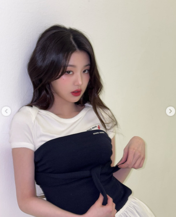 사진에서 장원영은 독보적인 인형 미모와 반팔에 오프숄더 톱처럼 묶은 스웨터를 매치한 스타일리시한 패션으로 눈길을 끈다. 몸매가 드러나는 패션으로 볼륨감을 강조해 이목을 집중시킨다. 특히 그는 고혹적인 눈빛으로 카메라를 바라보며 섹시미를 자아내는 모습으로도 팬심을 설레게 한다.