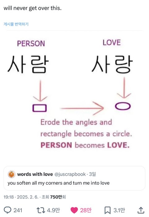 아래 한 팬이 남준이 가사 올렸는데 그 가사 해석이ㅈㄴ알티탐 단순 번역으로 끝나지않고 저렇게 뜻 풀이해서 듣는 것도 대단한거같음 근데 김남준 가사는 진짜 한국인인 내가 봐도 ㄹㅇ미치긴햇음ㅋㅋ